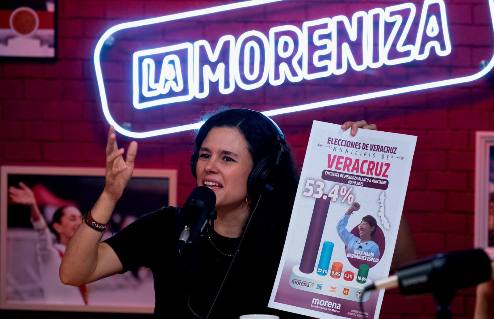 CDMX, jueves15 de mayo de 2025.- Durante una reciente emisión del podcast La Moreniza, la presidenta nacional de Morena, Luisa María Alcalde Luján, destacó los resultados de una encuesta que coloca a Rosa María Hernández Espejo con un 53 % de las preferencias electorales rumbo a la alcaldía del puerto de Veracruz, una ventaja que calificó como “brutal”.
