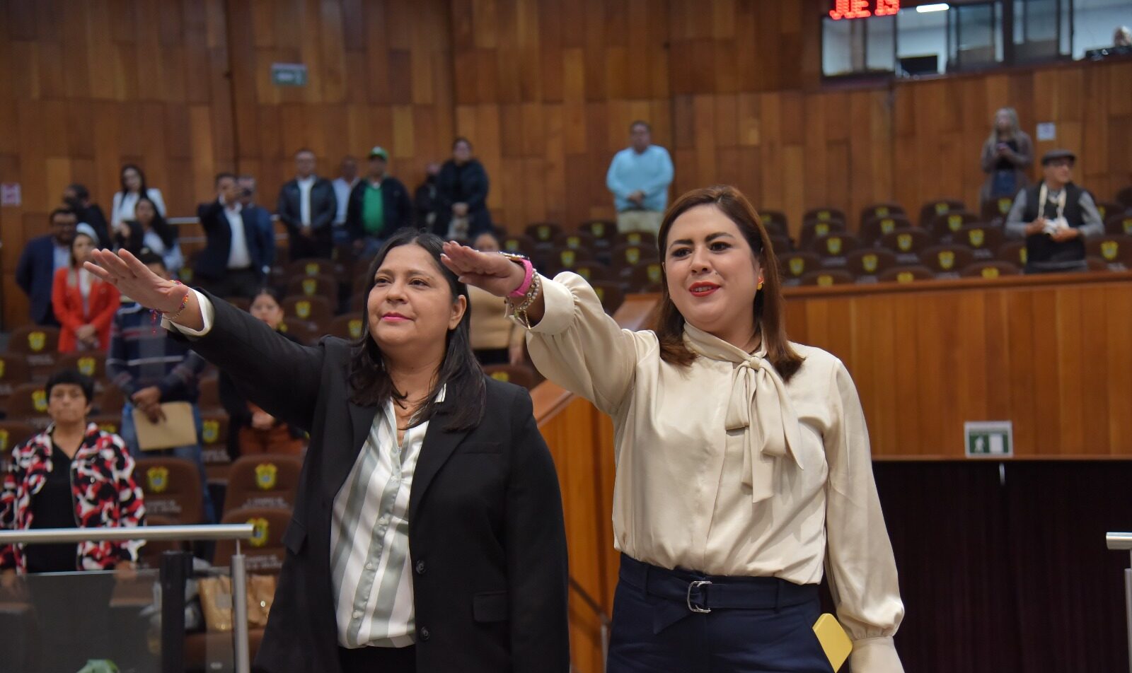 Xalapa, Ver., jueves 19 de junio de 2025.- En la octava sesión ordinaria y tras la aprobación de las licencias para separarse del cargo de la diputada Janeth Adanely Rodríguez Rodríguez y del diputado Igor Fidel Rojí López, se tomó la protesta de ley a las ciudadanas Laura Nayeli Mejía Larios y Nallely Mendoza Camarillo como diputadas a la LXVII Legislatura.