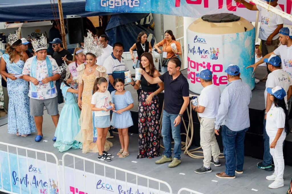 Boca del Río, Ver., domingo 27 de julio de 2025.- Este domingo 27 de julio se realizó la entrega del torito gigante de mil litros en los bajos del Registro Civil de la ciudad de Boca del Río. Los primeros asistentes llegaron desde las 16:00 horas, cuando apenas había alrededor de 50 personas en la Plaza Cívica. El evento fue encabezado por el presidente municipal Juan Manuel Unánue y su esposa Melina Rivera.