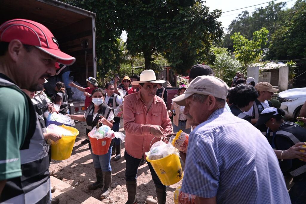 Al visitar la localidad de Estero del Ídolo y las colonias Heroica Veracruz, Barrio de las Flores, Jardín Viejo, así como las comunidades San Miguel, Raya Oscura, Zacatal y Santa Rosalía, y con la participación de la presidenta de la Mesa Directiva, diputada Naomi Edith Gómez Santos, y del coordinador del Grupo Legislativo del Partido Verde Ecologista de México (PVEM), diputado Carlos Marcelo Ruiz Sánchez, el legislador Bautista Hernández informó de la adquisición y entrega de 10 mil despensas, siete mil kits de limpieza y mil tinacos a las personas damnificadas, resultado del Acuerdo de las y los integrantes del Congreso local de donar un mes de salario.