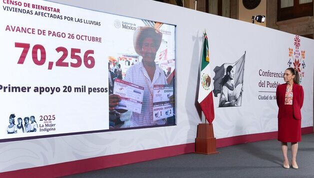 Ciudad de México, lunes 27 de octubre de 2025.- El Gobierno de México, a través de la Secretaría de Bienestar, informó que, al 26 de octubre, 70 mil 256 personas han recibido el primer apoyo de 20 mil pesos, así como dos vales de despensa y uno de enseres, por las afectaciones a causa de las lluvias extraordinarias registradas a comienzos de octubre en Veracruz, Hidalgo, Puebla, San Luis Potosí y Querétaro.