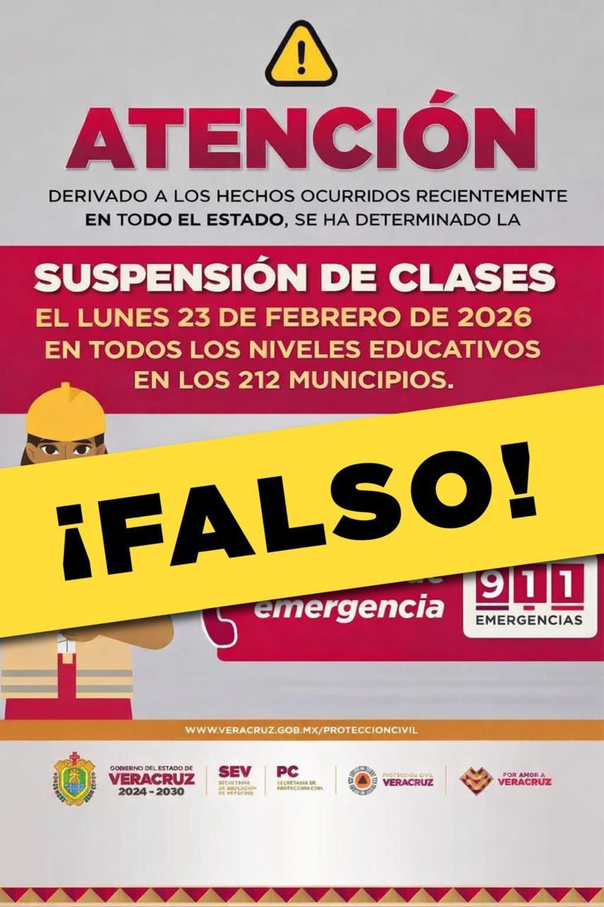 El Gobierno del Estado de Veracruz, a través de la Secretaría de Educación de Veracruz, informa que el lunes 23 de febrero las actividades escolares se llevarán a cabo con normalidad en los 212 municipios de la entidad.