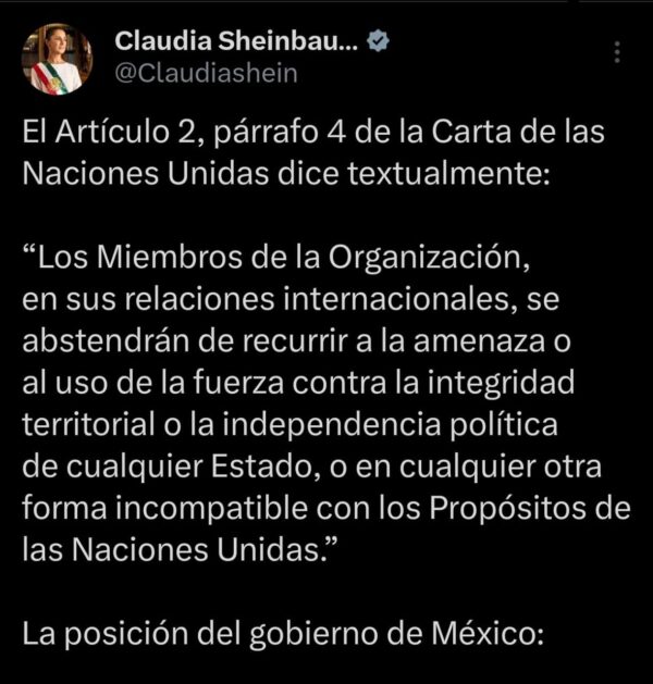 Secretaría de Relaciones Exteriores | 03 de enero de 2026 | Comunicado El Gobierno de México condena y rechaza enérgicamente las acciones militares ejecutadas unilateralmente