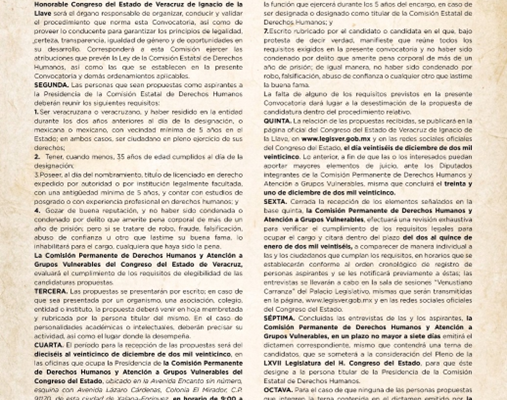 Emite Comisión la convocatoria para designar titular de la CEDH